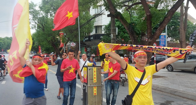 Nhóm cổ động viên này đến từ Vĩnh Phúc, mong muốn đội tuyển giành chiến thắng với tỉ số 2-1