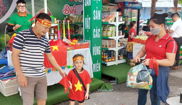 Anh Tiến (Yên Lập, Phú Thọ) đưa vợ con đến ủng hộ đội tuyển
