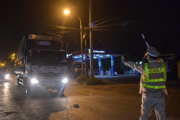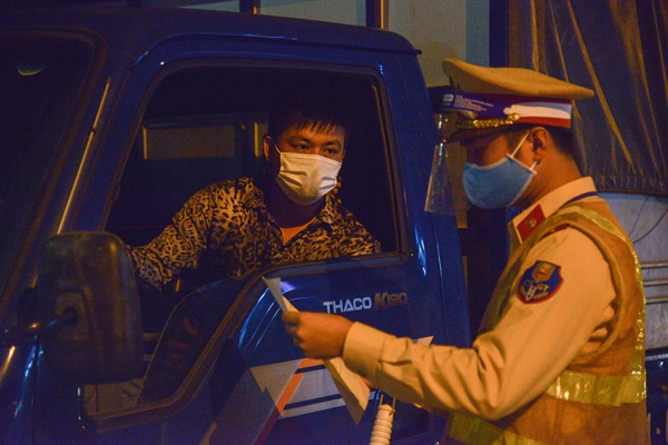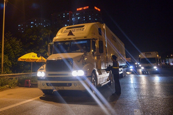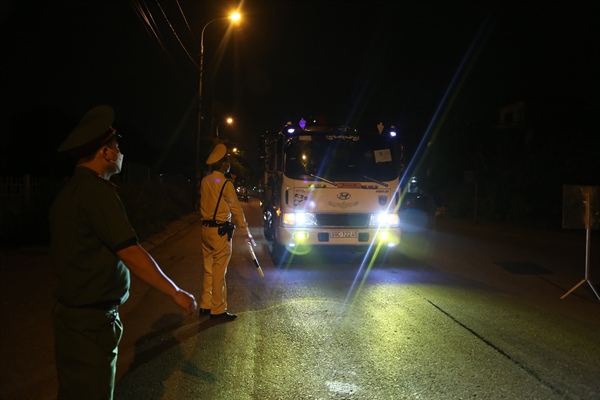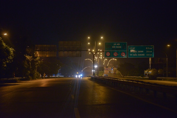 Gần 1h00 sáng ngày 30.7.2021 tại chốt kiểm soát số 5 trên cầu Phù Đổng (huyện Gia Lâm, Hà Nội) đoạn nối vào cao tốc Hà Nội - Lạng Sơn, không còn tình trạng ùn tắc kéo dài thay vào đó tình hình đã thông thoáng
