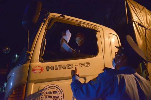 Việc kiểm tra với xe chở hàng khi ra, vào địa điểm tập kết, trung chuyển, giao nhận hàng hóa (cảng, bến, nhà ga, kho bãi, khu công nghiệp, cơ sở sản xuất…) phải đảm bảo tuân thủ đầy đủ các yêu cầu phòng chống dịch, không gây ùn tắc giao thông