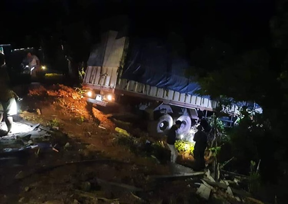 Vào khoảng 20 giờ ngày 23.4, xe tải mang BKS UN-1945 chở hàng nông sản lưu thông trên quốc lộ 12A theo hướng cửa khẩu Cha Lo về trung tâm huyện Minh Hóa, khi đến ngã ba tượng đài bản Bãi Dinh (xã Dân Hóa) thì bất ngờ lao vào nhà ông Đ.M.T. ở bên đường.
