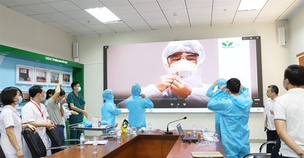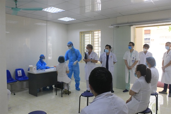 Cũng trong chiều 26.7, Bệnh viện Nội tiết Trung ương đã tổ chức lễ xuất quân tiễn đoàn cán bộ lên đường vào TP.HCM chia lửa khó khăn với thành phố. Ngay tối 26.7, 33 bác sỹ, điều dưỡng, kỹ thuật y đã lên đường. Họ đều đã được tiêm vắcxin-19. Đoàn sẽ vào hỗ trợ Bệnh viện Dã chiến quận 9.