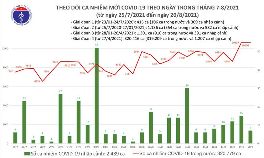 Trong ngày 20.8, có 12.756 bệnh nhân được công bố khỏi bệnh. Tổng số ca được điều trị khỏi: 132.815 ca; Số bệnh nhân nặng đang điều trị ICU: 666 ca; Số bệnh nhân nguy kịch đang điều trị ECMO: 24 ca.