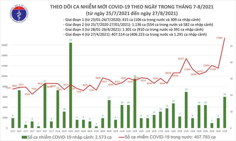 Số mắc trong ngày 27.7 tăng 17.409 ca