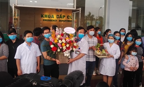 Đoàn 30 người được ra viện tặng hoa cám ơn lãnh đạo, y, bác sĩ Bệnh viện Bệnh Nhiệt đới Trung ương
