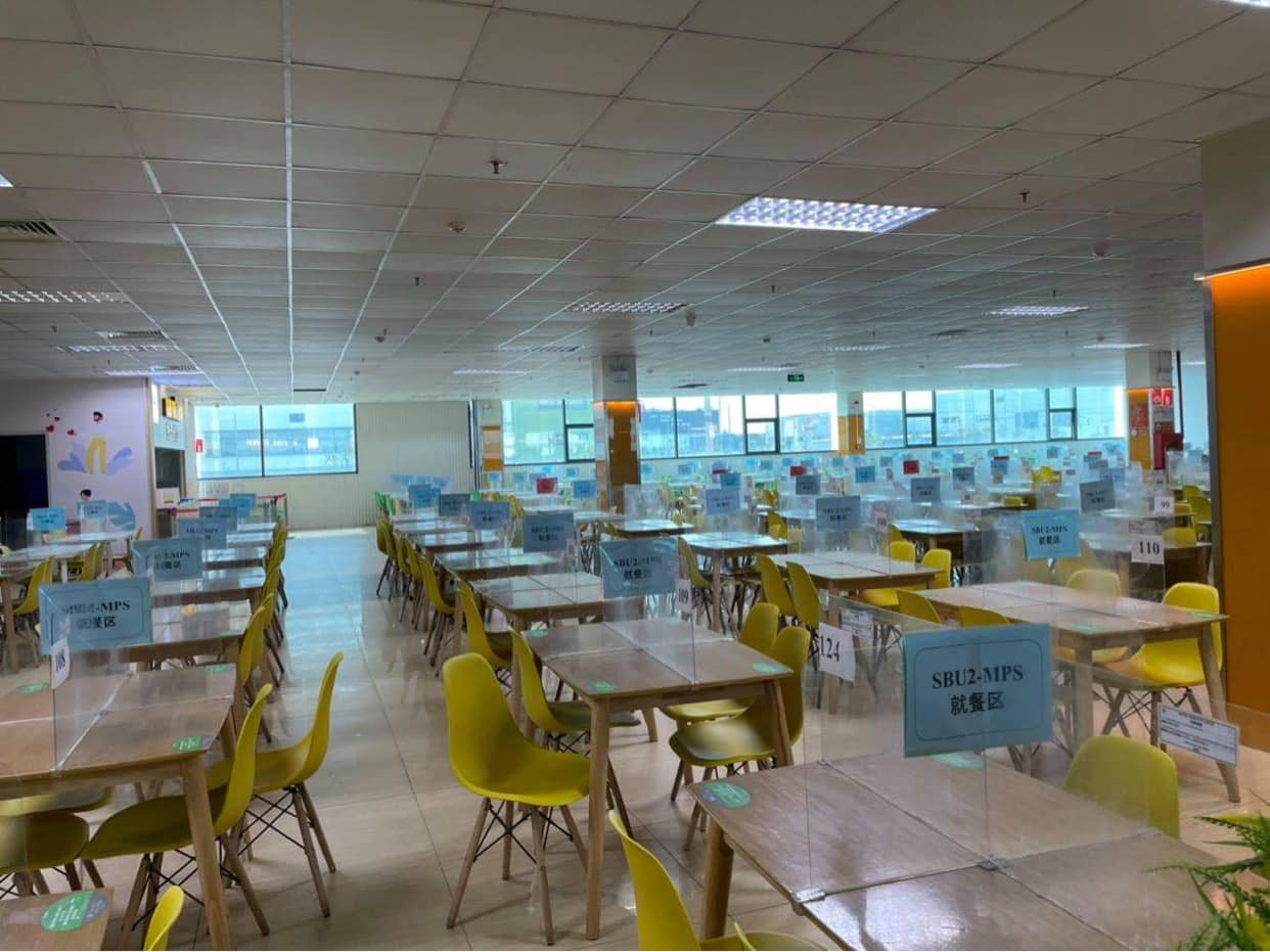 Nhà ăn giãn cách tại khu công nghiệp tỉnh Bắc Ninh