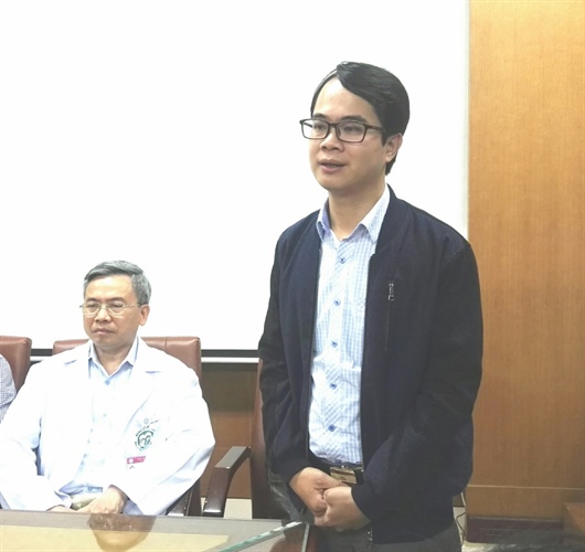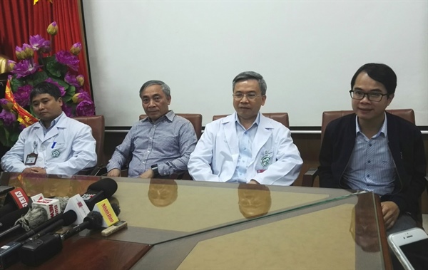 Bác sĩ Nguyễn Hồng Phong (ngoài cùng bên phải) và lãnh đạo Bệnh viện Bạch Mai tại buổi họp báo