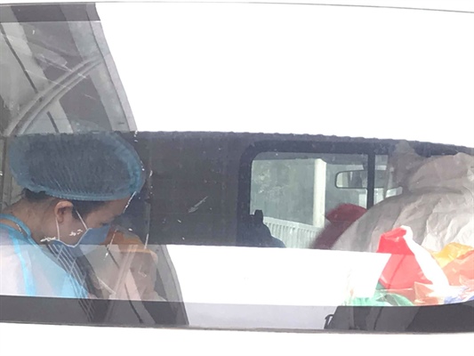 Bé N.G.L được xe cấp cứu đưa về cách ly tại Phòng khám đa khoa Quang Hà