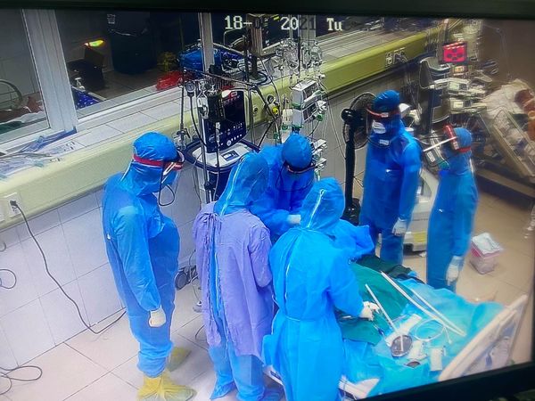 Đến ngày 9.5, bệnh nhân tiếp tục được làm xét nghiệm SARS-CoV-2 và cho kết quả dương tính. Trong quá trình điều trị, tình trạng bệnh nhân tiến triển nặng dần, suy hô hấp tiến triển, được đặt ống nội khí quản, thở máy vào ngày 26.5. Bệnh nhân được chẩn đoán: Sốc nhiễm khuẩn trên bệnh nhân xơ gan mất bù Child Pugh C, biến chứng hôn mê gan, viêm phổi do SARS-CoV-2.