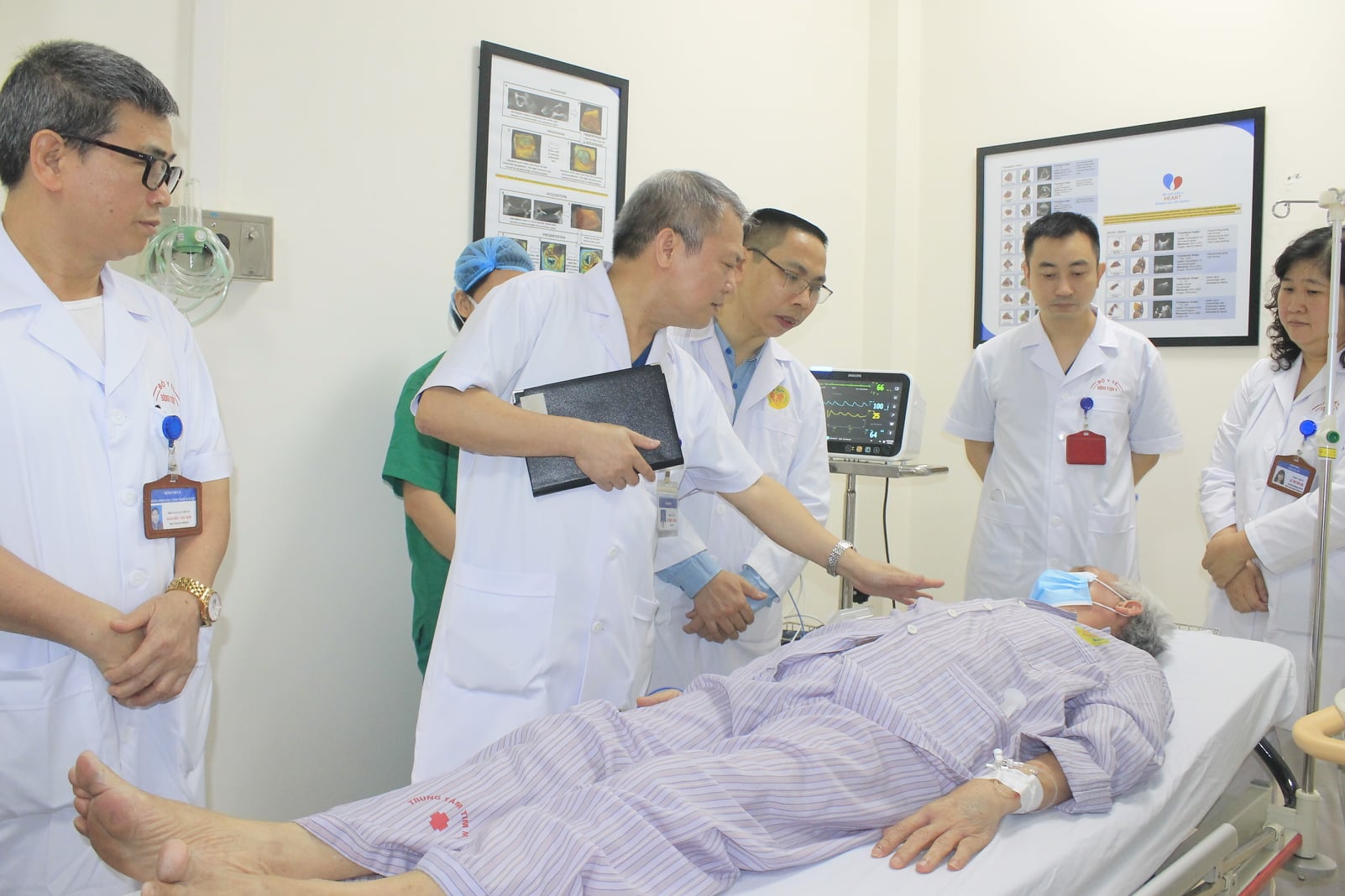 GS.TS Lê Ngọc Thành thăm hỏi bệnh nhân đầu tiên được can thiệp mạch tại phòng cấp cứu