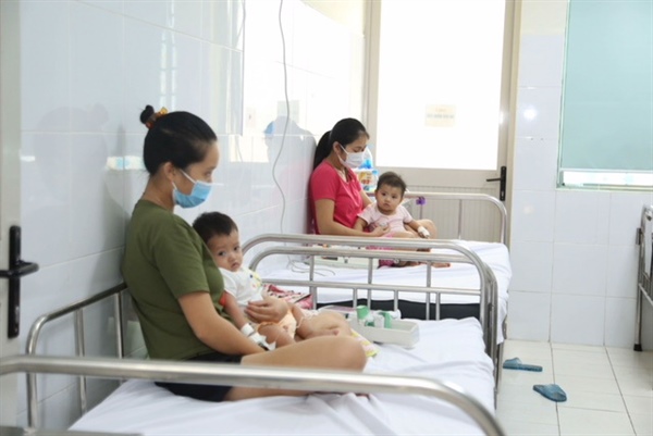 Bệnh nhi mắc sởi đang được điều trị tại Bệnh viện Nhi Trung ương. Ảnh: THẾ CƯỜNG