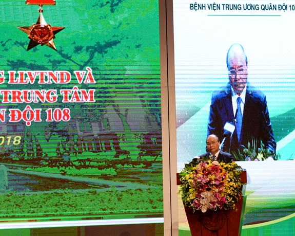 Phát biểu tại buổi lễ, Thủ tướng Chính phủ Nguyễn Xuân Phúc đã ghi nhận, biểu dương các cán bộ, y sĩ, bác sĩ của Bệnh viện Trung ương quân đội 108 trong những năm qua luôn hoàn thành tốt nhiệm vụ chăm sóc, điều trị cho cán bộ, chiến sĩ và nhân dân, đặc biệt là nhiệm vụ chăm sóc bảo vệ sức khỏe cho các đồng chí cán bộ cao cấp của Đảng, Nhà nước, Quân đội. Đội ngũ cán bộ thầy thuốc của Bệnh viện đã làm chủ các trang thiết bị y tế hiện đại, thực hiện thành công, an toàn các kỹ thuật khó, phức tạp, kỹ thuật cao, chuyên sâu, cứu sống được nhiều đồng chí thương binh, bệnh binh nặng và các bệnh nhân mắc bệnh hiểm nghèo; khẳng định chức năng đầu ngành của các chuyên khoa tuyến cuối.