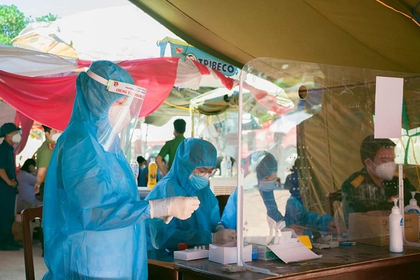 Các chốt kiểm soát lấy mẫu test nhanh kháng nguyên cho người dân.