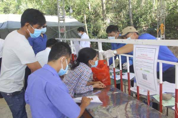 Người dân Bình Định khai báo y tế tại các chốt kiểm soát