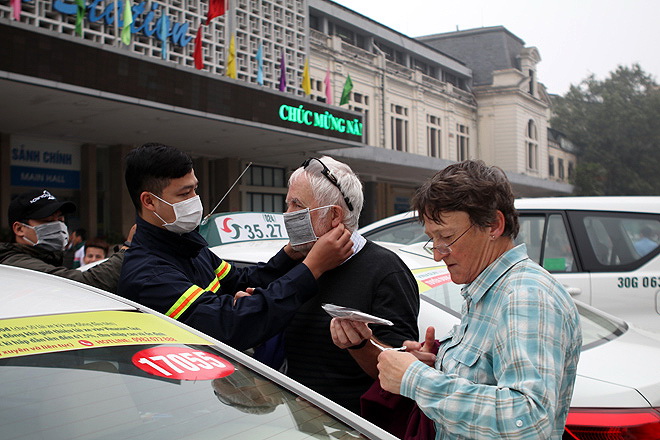 Khách du lịch cảm kích khi nhận chiếc khẩu trang miễn phí