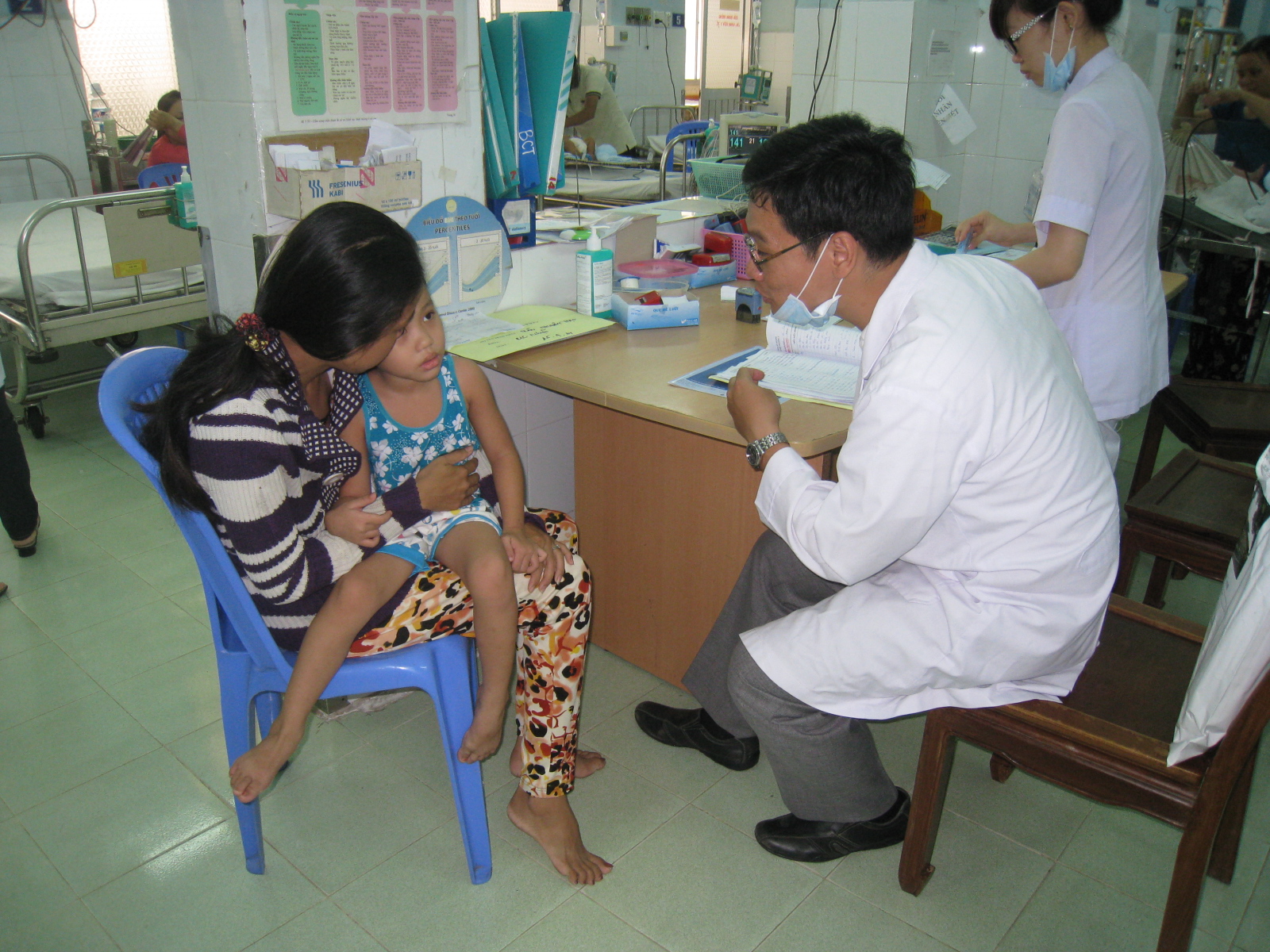 Trẻ bị bệnh sốt xuất huyết đang được khám tại Khoa Nhiễm bệnh, Bệnh viện Nhi đồng 2 Ảnh: N.HIẾU