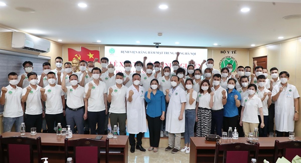 VHO- Sáng 10.8, Bệnh viện Răng, Hàm, Mặt Trung ương Hà Nội đã tổ chức Lễ xuất quân đoàn công tác tình nguyện hỗ trợ TP. Hồ Chí Minh phòng, chống dịch Covid-19. Tham dự buổi lễ có lãnh đạo Bệnh viện và 38 bác sĩ, điều dưỡng, kỹ thuật viên tham gia đoàn.