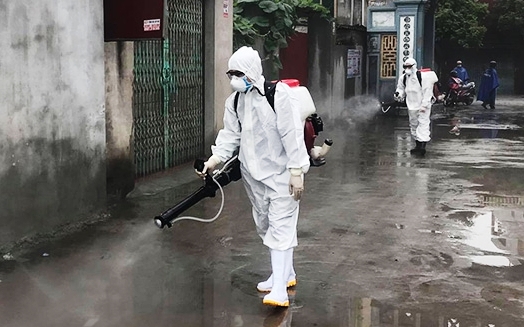 Sáng 19.3, Trung tâm Kiểm soát bệnh tật tỉnh Hải Dương huy động lực lượng gồm 11 người cùng các phương tiện, máy móc, hóa chất phối hợp với các lực lượng của huyện, xã tiến hành phun thuốc sát khuẩn. Khu vực khử khuẩn trên đường tỉnh 392B, đoạn qua thôn Tiêu Sơn, xã Thanh Giang, các trục đường chính trong thôn và tại các hộ thuộc diện đi cách ly.