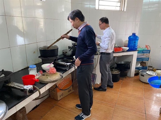 PGS.TS Trần Như Dương, Phó Viện trưởng Viện VSDTTƯ (người cầm đũa) trực tiếp nấu ăn cho cán bộ dịch tễ khi các quán ăn ở xã Sơn Lôi đóng cửa