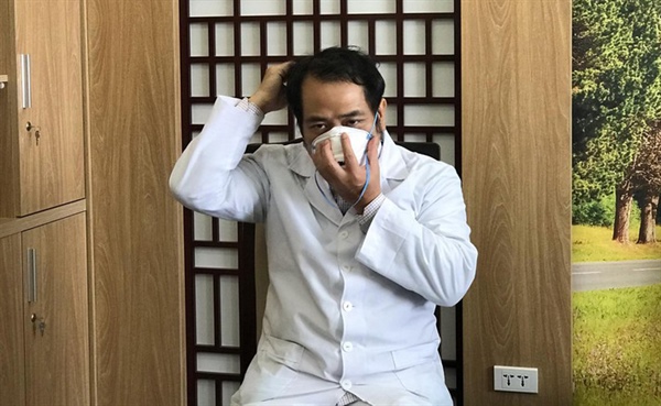 Ths.Bs Nguyễn Trung Cấp, Trưởng khoa Cấp cứu, Bệnh viện Bệnh nhiệt đới Trung ương hướng dẫn cách đeo và tháo khẩu trang đúng cách