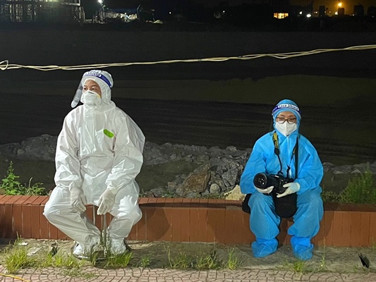 Dù đã nhiều lần đi công tác nhưng chưa bao giờ Thảo lại thấy tủi thân như vậy, thế mà hôm sau sức khỏe ổn hơn, hai anh em lại động viên nhau, lại mặc lên mình quần áo bảo hộ cấp 4 và tiếp tục công việc của mình. Động lực mà hai anh em làm việc hết mình như vậy được nữ phóng viên trẻ gói gọn trong một câu: “Mệt nhưng mà vui”. Vui vì làm được nhiều việc và hôm sau phải cố gắng làm nhiều việc hơn thế. Giờ giấc cũng không cố định, các y bác sĩ, nhân viên y tế còn làm việc thì mình phải theo chân họ, theo chân đội truy vết. Khi phòng xét nghiệm làm việc xuyên đêm hai anh em lại có mặt để ghi nhận và tới 2-3 giờ sáng mới về nhà, nghỉ ngơi…