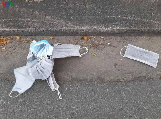 Không nên vứt khẩu trang y tế một cách tuỳ tiện Ảnh: VOV