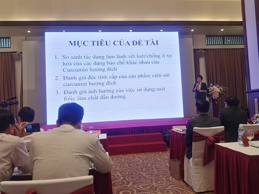 Tại hội thảo, TS Phạm Thị Thu Hường, Phòng Thí nghiệm trọng điểm công nghệ Enzym và Protein (Klept – Trường ĐH KHTN – ĐH Quốc gia Hà Nội) cho biết, curcumin là thành phần tinh chất của củ nghệ vàng, có tác dụng chống viêm, ức chế bơm proton, giảm đau; đồng thời giúp ức chế sự sinh trưởng của vi khuẩn H.P (nguyên nhân gây ra ung thư), tạo lớp nhầy, bảo vệ dạ dày. Đối với curcumin hướng đích có khả năng tập trung mạnh với tế bào viêm (tăng gấp 70 lần) so với Nano curcumin thông thường, vì vậy hiệu quả vượt trội hơn khi hướng đích tập trung vào các tế bào viêm. Việc sử dụng axit folic trong curcumin hướng đích để làm chất dẫn đường, không có tác dụng dược lý và an toàn cho người sử dụng.
