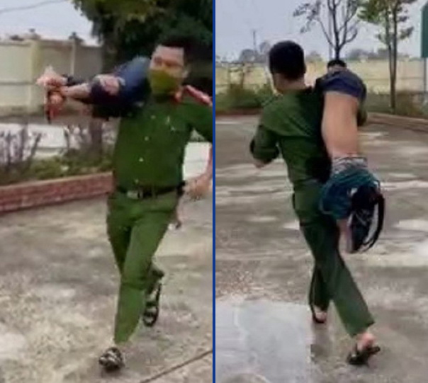 Hình ảnh thượng úy Công an xã ở Thanh Hóa vác ngược cháu bé bị đuối nước như cách cấp cứu