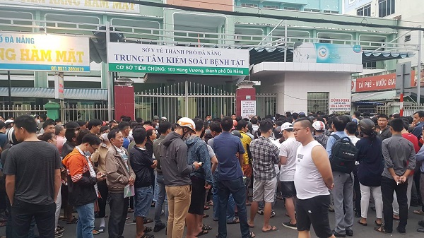 Hàng trăm người dân chờ trước cổng Trung tâm kiểm soát bệnh tật Đà Nẵng từ đêm