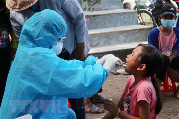 Cán bộ y tế lấy mẫu xét nghiệm người dân trong khu dân cư có bệnh nhân mắc bạch hầu tại Đắk Lắk