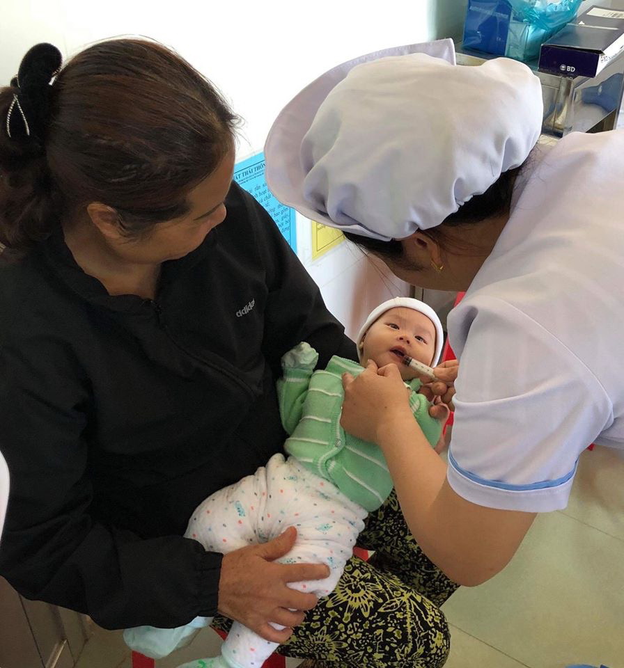 Cho trẻ uống vắc xin tại TYT xã Đạ Ròn (Lâm Đồng) – một trong 26 TYT xã điểm Ảnh: V.M.CƯỜNG