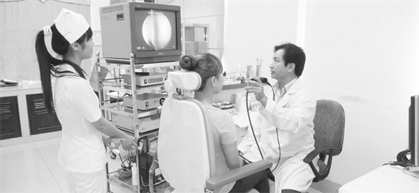 Bác sĩ khoa tai mũi họng Bệnh viện tư nhân Hồng Đức đang khám cho người bệnh