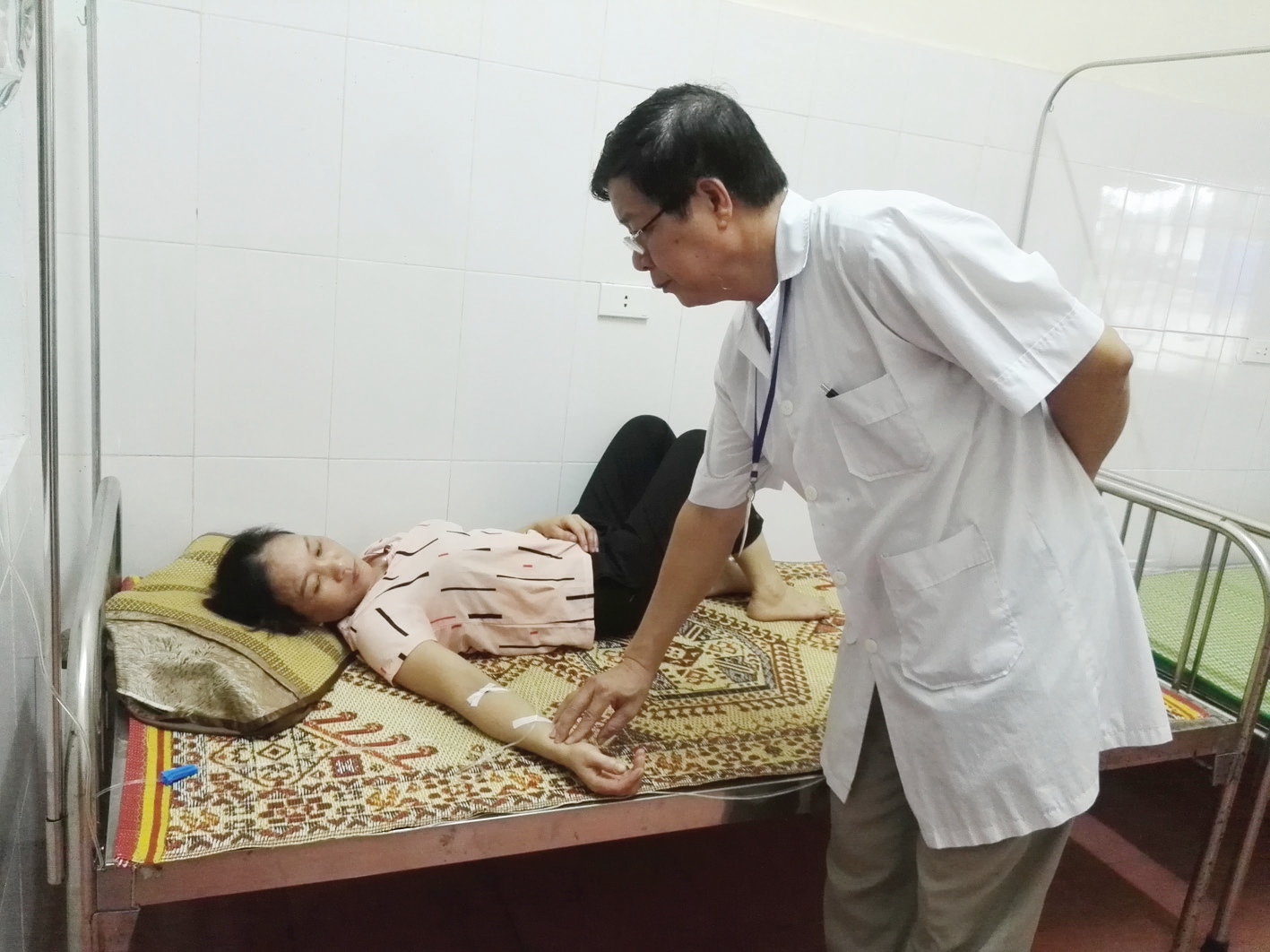 Ông Nguyễn Hồng Khoa, Trưởng trạm Y tế xã Hộ Độ (Hà Tĩnh) khám sức khỏe cho bệnh nhân