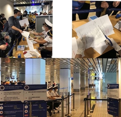 Với tinh thần chống dịch như chống giặc, kể cả trong ngày nghỉ Tết, nhờ sự chuẩn bị sẵn sàng ứng phó với dịch bệnh của ngành Y tế, và các đơn vị liên quan, hiện nay các cửa khẩu, sân bay đã thực hiện nghiêm túc chỉ đạo của Phó Thủ tướng. Ngày 24.1, Bộ Y tế ban hành công văn về việc áp dụng tờ khai y tế tại cửa khẩu, áp dụng từ 00h00 ngày 25.1. Theo đó, kiểm dịch viên y tế làm thủ tục nhập cảnh chỉ dẫn hành khách đến em bộ phận kiểm dịch y tế để khai tờ khai y tế khi làm thủ tục nhập cảnh đối với hành khách đến từ Trung Quốc. Tại đây kiểm dịch viên y tế có trách nhiệm hướng dẫn hành khách khai báo y tế và đóng dấu xác nhận. Khi phát hiện hành khách có biểu hiện nghi ngờ mắc bệnh do nCoV , kiểm dịch viên y tế áp dụng các biện pháp kiểm dịch y tế theo quy định. Được biết hầu hết các hành khách đều chấp hành, tuân thủ quy định.