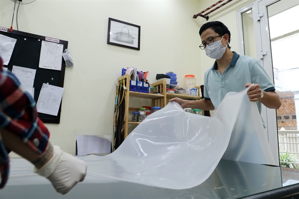 Anh Hà nhấn mạnh, thiết kế sản phẩm "tai giả" có đôi chút đặc biệt nếu không điều chỉnh sẽ không được hoàn thiện. Cụ thể chất liệu silicon mềm, dai, nhưng rất dễ rách, chính vì vậy việc làm điểm tròn tại các rãnh sẽ hạn chế được tối đa điều này.