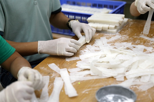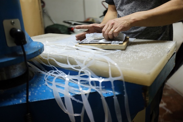 Những cuộn silicon có chiều dài lên đến 18m được cắt theo kích thước phù hợp nhất trước khi sản xuất "tai giả".