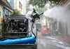 Các lực lượng chức năng TP Hà Nội khử khuẩn tại các khu phố có bệnh nhân Covid-19