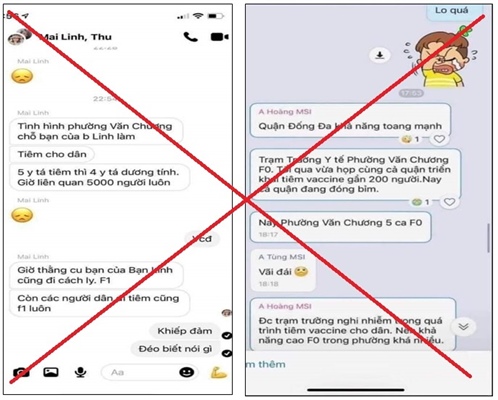 Cụ thể, ngày 9.8, trên một số diễn đàn, mạng xã hội lan truyền thông tin tại Trung tâm Y tế quận Đống Đa, Hà Nội phát hiện các ca mắc Covid-19. Những ca này, trước đó đã tham gia tiêm chủng cho người dân dẫn đến nguy cơ lây lan dịch trong cộng đồng với khoảng 5000 F1. Đại diện UBND quận Đống Đa khẳng định thông tin trên hoàn toàn sai sự thật; đề nghị người dân nên cảnh giác, nắm bắt thông tin chính xác từ các cơ quan chức năng; phối hợp phản ánh cho cơ quan chức năng các thông tin sai sự thật.