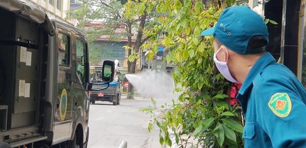 Lực lượng quân đội khử trùng trên phố Trúc Bạch