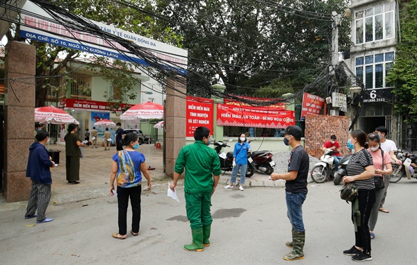 Trước đó, ngày 18.4, Trung tâm y tế quận Đống Đa đã lấy tờ khai y tế và tiến hành sàng lọc được gần 170 người thuộc đối tượng phải thực hiện xét nghiệm nhanh.