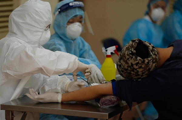 VHO- Sáng 19.4, Trung tâm Y tế quận Đống Đa, Hà Nội đã tổ chức lấy mẫu xét nghiệm nhanh Covid-19 cho gần 170 tiểu thương và các đối tượng liên quan tại chợ Ngã Tư Sở.