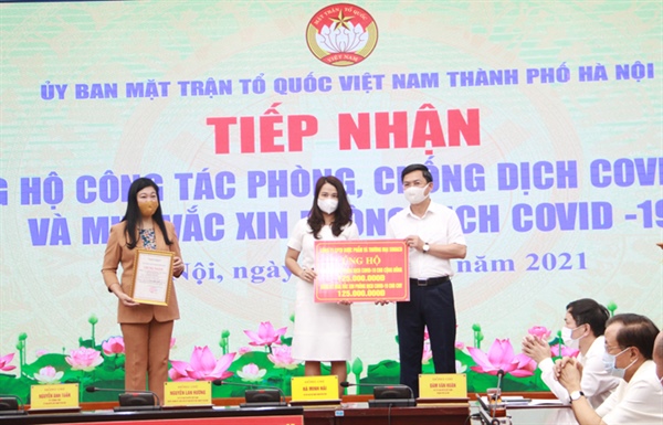 Cùng trong ngày 17.6, Ủy ban Mặt trận Tổ quốc Việt Nam Thành phố Hà Nội đã tiếp nhận ủng hộ mua vaccine và phòng, chống dịch Covid-19 với tổng số tiền hơn 2 tỷ đồng của 16 cơ quan, tổ chức, doanh nghiệp, cá nhân, trong đó, hơn 498 triệu đồng ủng hộ phòng, chống dịch Covid-19 và hơn 1,6 tỷ đồng đăng ký ủng hộ mua vaccine phòng dịch Covid-19.