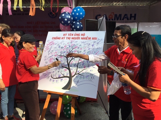 Ký tên ủng hộ chống kì thị người nhiễm HIV/AIDS tại Lễ mít tinh