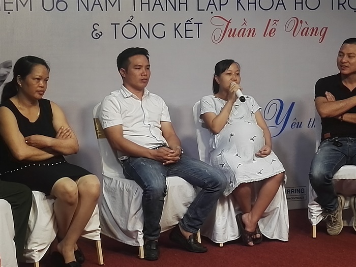 Vợ chồng anh Khánh – chị Phương (giữa) chia sẻ về niềm vui sau hành trình tám năm tìm kiếm tiếng cười trẻ thơ - Ảnh: Q.Hoa