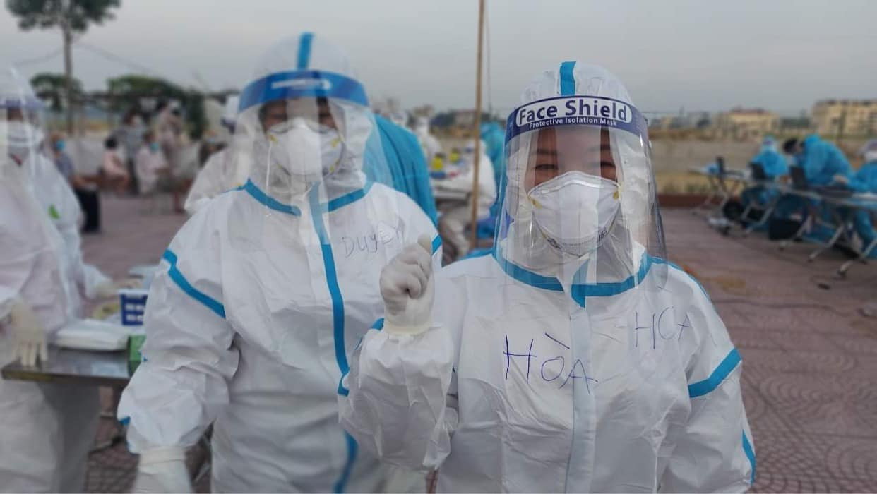 Mặc cho nắng nóng tới 39-40 độ C, làm việc đến kiệt sức nhưng nhân viên y tế một lòng quyết tâm nhanh chóng dập dịch
