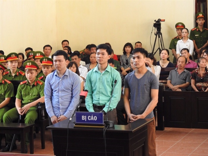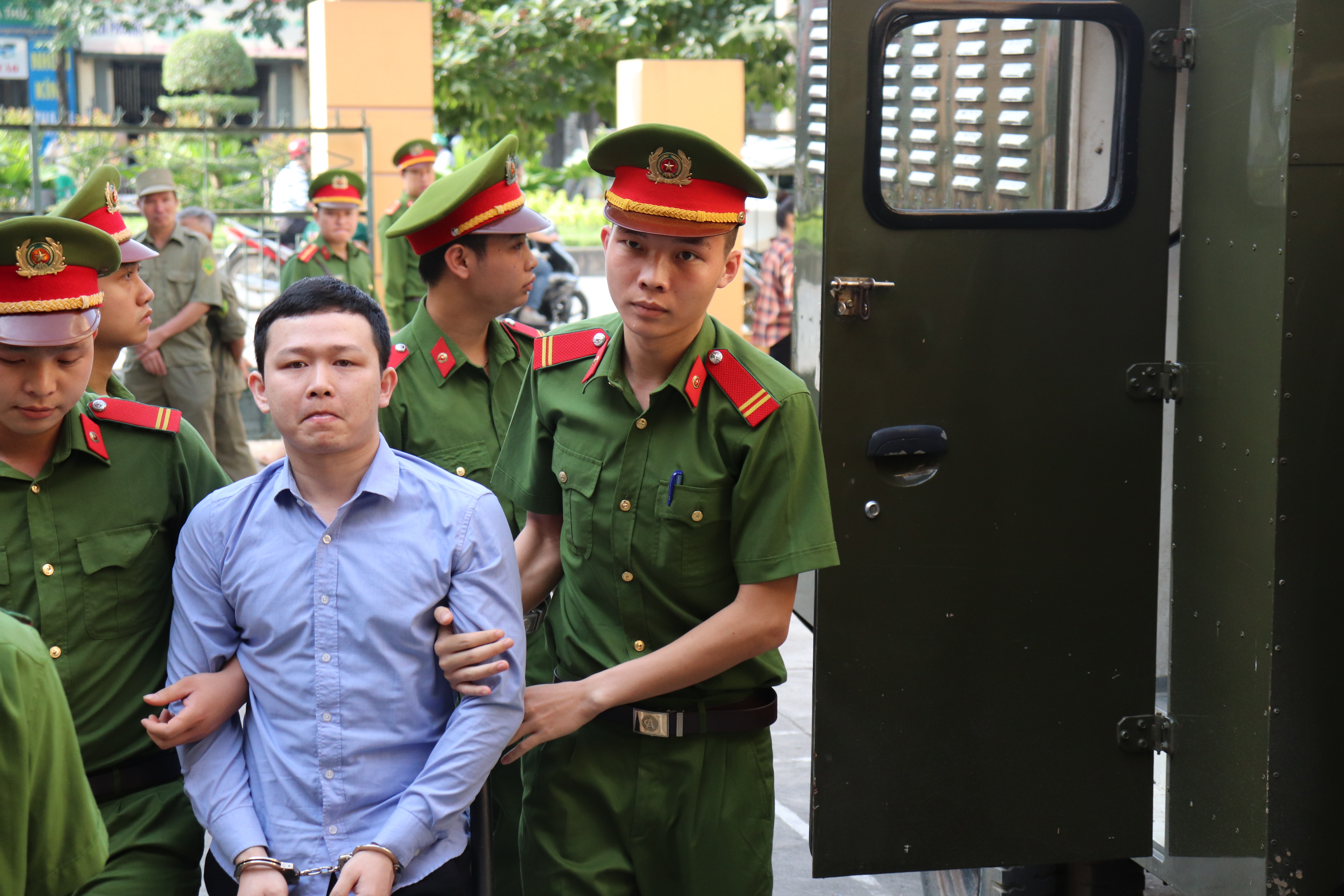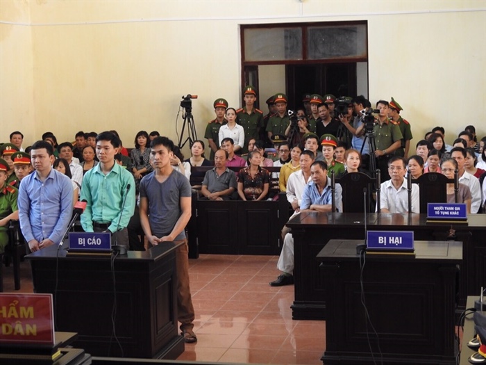 Cả ba bị cáo đều còn khá trẻ. Bác sỹ Hoàng Công Lương, bác sỹ khoa Hồi sức tích cực - bệnh viện đa khoa tỉnh Hoà Bình, do được tại ngoại nên đến toà khá sớm. Khoảng 7:30, xe đặc chủng của công an chở 2 bị cáo là Trần Văn Sơn , cán bộ phòng vật tư trang thiết bị y tế Bệnh viện đa khoa tỉnh Hoà Bình và bị cáo Bùi Mạnh Quốc, Giám đốc công ty trách nhiệm hữu hạn và xử lý nước Trâm Anh
