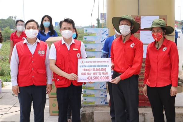Trước tình hình dịch bệnh Covid-19 có nhiều diễn biến mới, phức tạp tại 2 tỉnh Bắc Giang, Bắc Ninh, phát huy tinh thần “Hà Nội vì cả nước”, Hội Chữ thập đỏ thành phố Hà Nội đã kêu gọi, vận động các cơ sở Hội, cơ quan, doanh nghiệp, nhà hảo tâm chung tay hỗ trợ các tỉnh thành bạn trong công tác phòng chống dịch bệnh. Ngày 20.5.2021, đoàn công tác Hội Chữ thập đỏ thành phố Hà Nội tổ chức trao tặng nguồn lực tới 2 tỉnh Bắc Giang và Bắc Ninh, với tổng số tiền và hàng hỗ trợ trên 1,3 tỷ đồng.