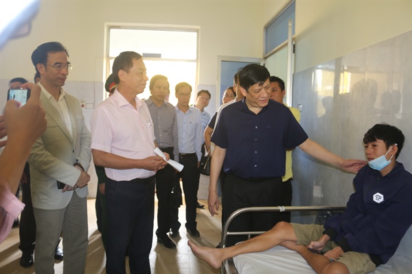 Đoàn công tác của Bộ Y tế thăm hỏi bệnh nhân đang điều trị tại Bệnh viện đa khoa huyện Lệ Thủy (Quảng Bình) Ảnh: H.THÁI