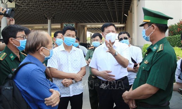 Đoàn công tác của BCĐ quốc gia phòng, chống dịch Covid-19 kiểm tra tại cửa khẩu Mộc Bài (Tây Ninh) Ảnh: TTXVN