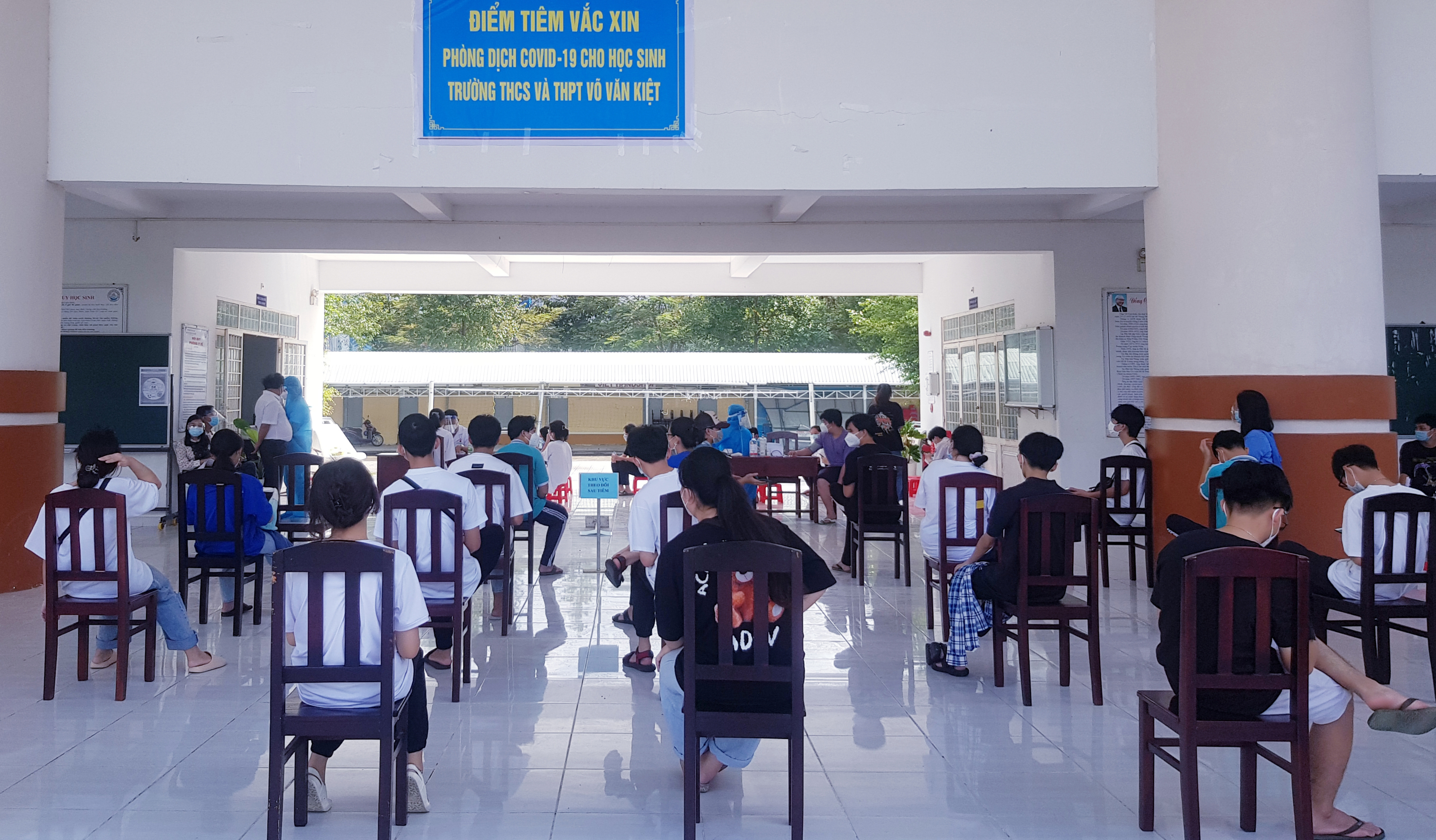 Tiêm vắc xin cho học sinh lớp 12 tại Trường Võ Văn Kiệt TP Rạch Giá